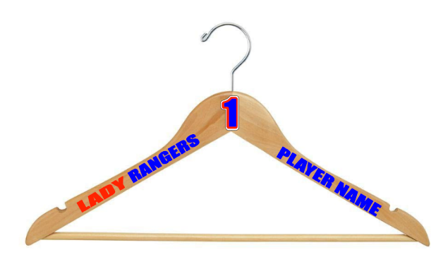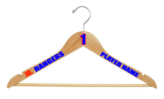 Custom Hangers $10 for a set of 2. Player number can be removed. team logos need approval from the company. Contact us privately for bulk order prices.